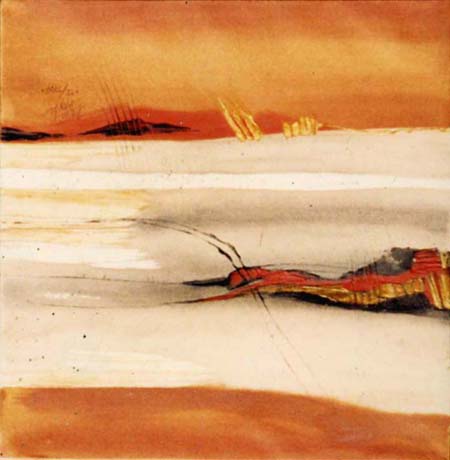 In almost all his works,we can feel the sound of Indonesia traditional environments expressed in abstract s tyle. Relying